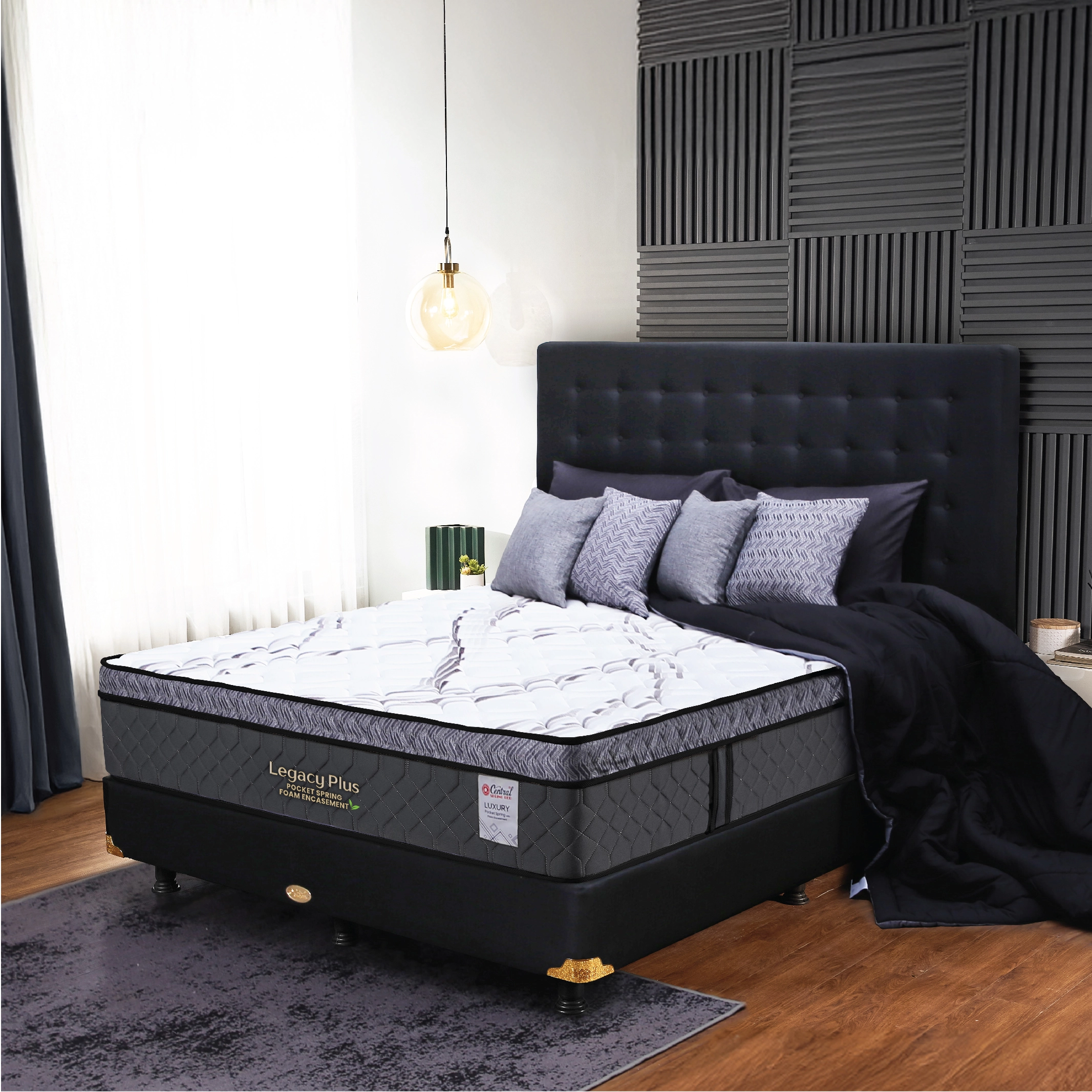Central Legacy Plus Pocket Spring dirancang dengan sistem Independent Pocket Spring – per yang dibungkus satu per satu untuk memberikan dukungan yang stabil dan responsif. Kasur ini dilengkapi Plush Top tebal dengan lapisan Ultra Plush Foam yang memberikan kenyamanan ekstra, serta dilapisi kain 3D Knitted Fabric yang sejuk dan lembut di kulit. Untuk ketahanan dan kestabilan maksimal, setiap sisi kasur diperkuat dengan Foam Encasement.