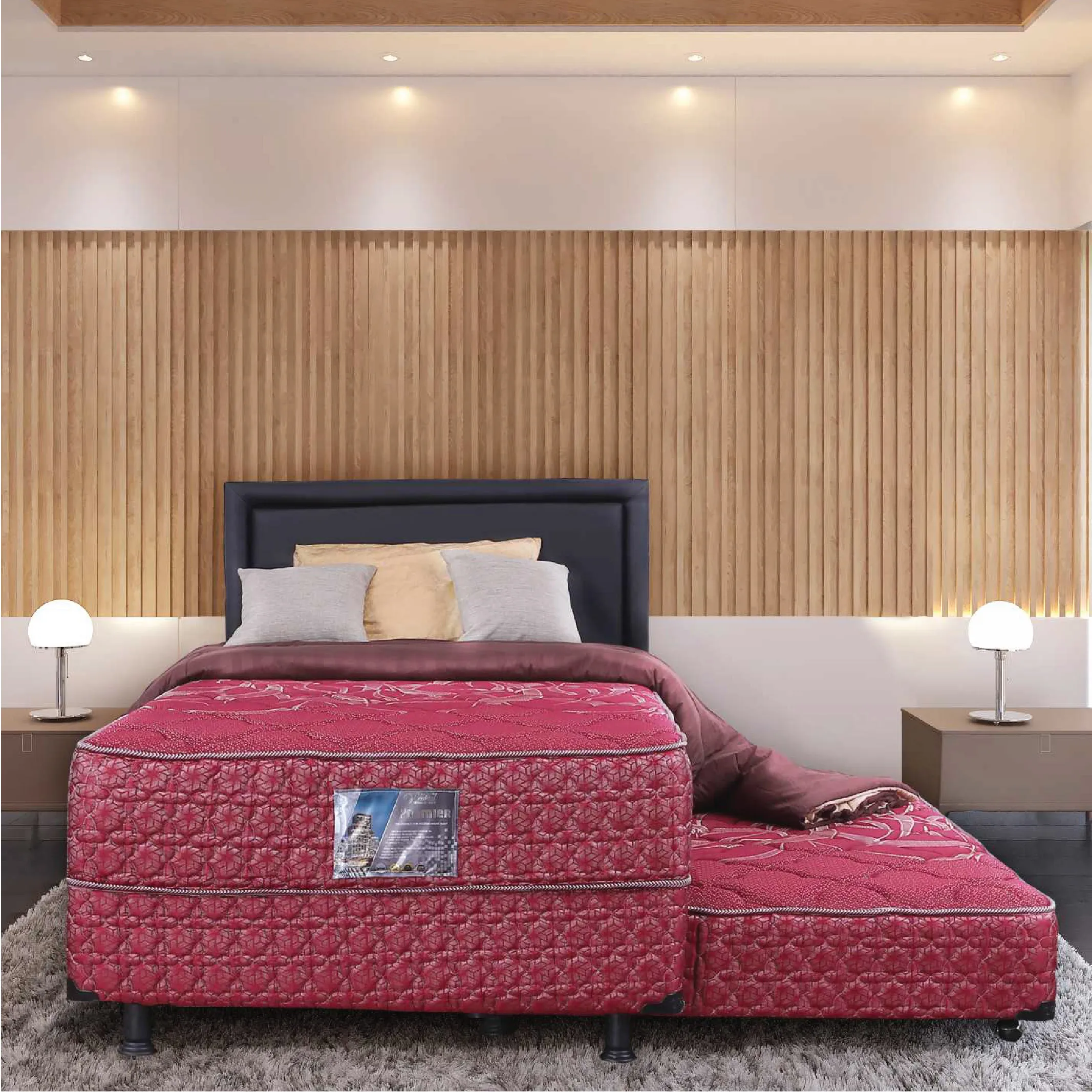 Kasur dengan dua tingkatan ini membuat ruangan lebih luas namun tetap dapat dimaksimalkan dengan 2 kasur menjadi 1. Menggunakan pegas Bonnel Spring yang awet dan tahan lama, kasur ini memberikan dukungan tubuh terbaik dengan tingkat kekerasan medium yang cocok untuk semua kalangan usia. Dilengkapi dengan Kain Jacquard yang kuat dan adem saat bersentuhan dengan kulit.