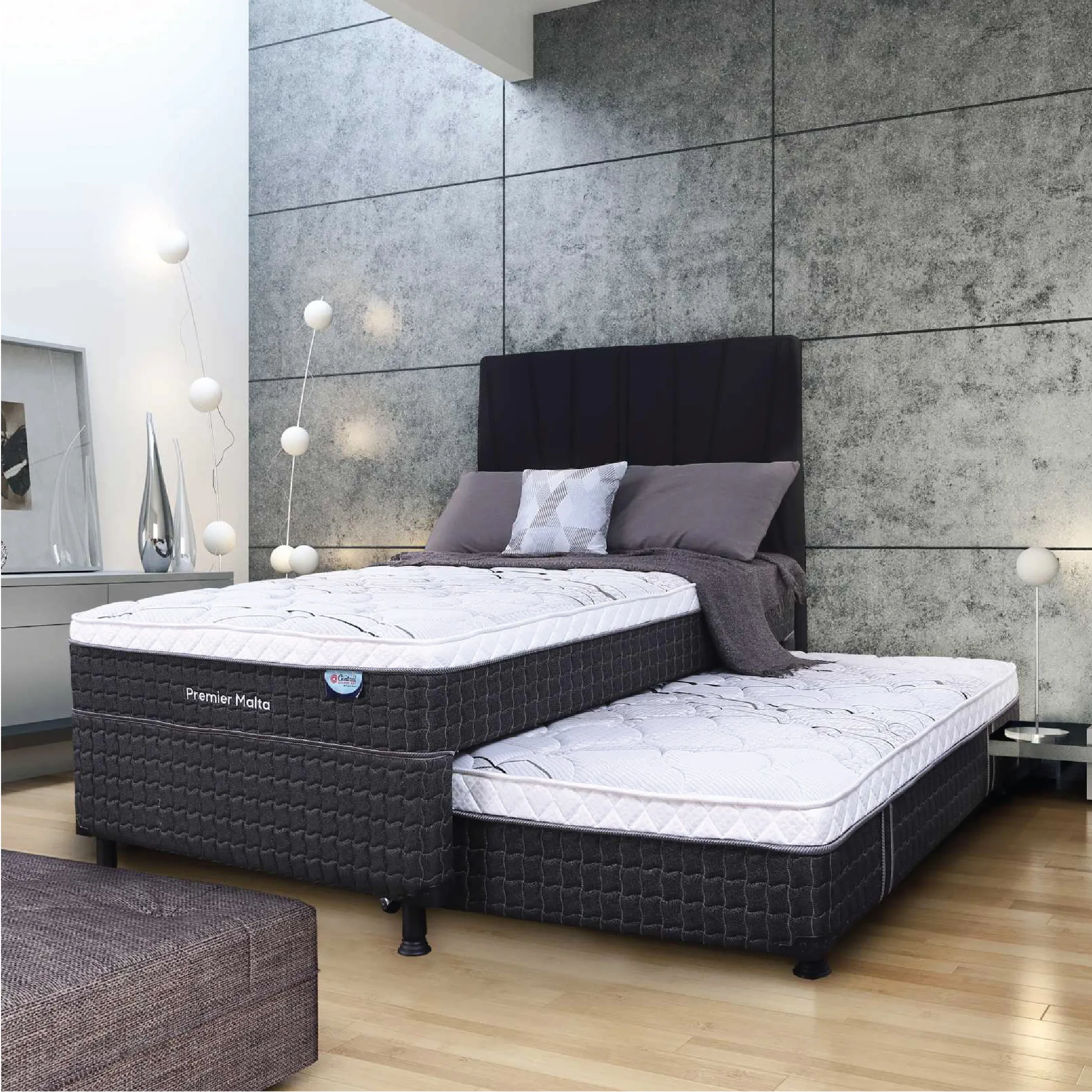 Kasur dengan dua tingkatan ini membuat ruangan lebih luas namun tetap dapat dimaksimalkan dengan 2 kasur menjadi 1. Menggunakan pegas Bonnel Spring yang awet dan tahan lama, kasur ini memberikan dukungan tubuh terbaik dengan tingkat kekerasan firm untuk menopang tubuh dan tulang belakang secara maksimal. Kain rajut 3D (3D Knitted Fabric) membuat permukaan kasur lebih adem dan nyaman sepanjang malam.