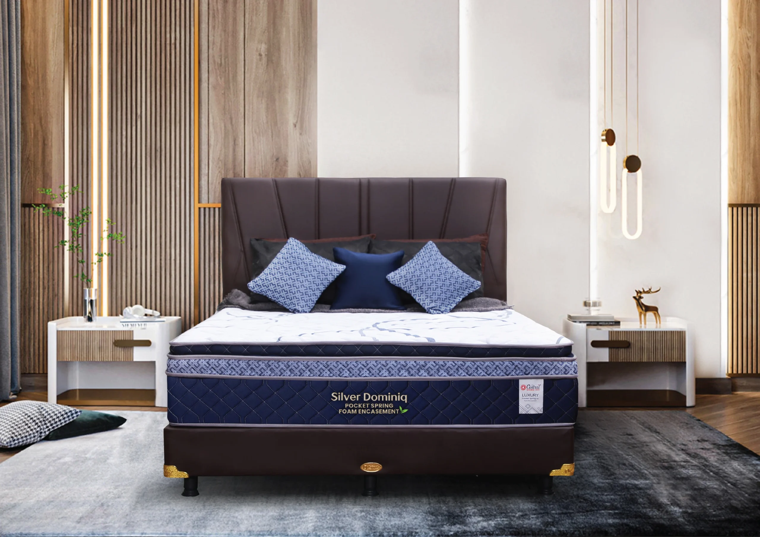 Kasur medium soft dengan independent pocket spring, foam encasement, dan plush pillow top untuk kenyamanan optimal.