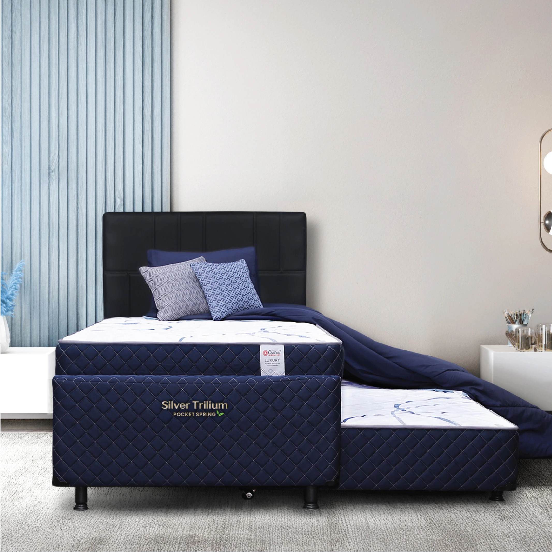 Kasur Silver Trilium ini memiliki dua tingkatan untuk ruangan yang lebih luas, namun tetap dapat dimaksimalkan dengan menyatukan 2 kasur menjadi 1. Dengan Independent Pocket Spring untuk menjaga keselarasan tulang belakang dan memberikan tidur yang stabil. Tingkat kekerasan medium cocok untuk semua kalangan usia. Breathable 3D Knitted Fabric membuat permukaan kasur lebih adem, tidak panas, sehingga tidur lebih nyaman sepanjang malam.